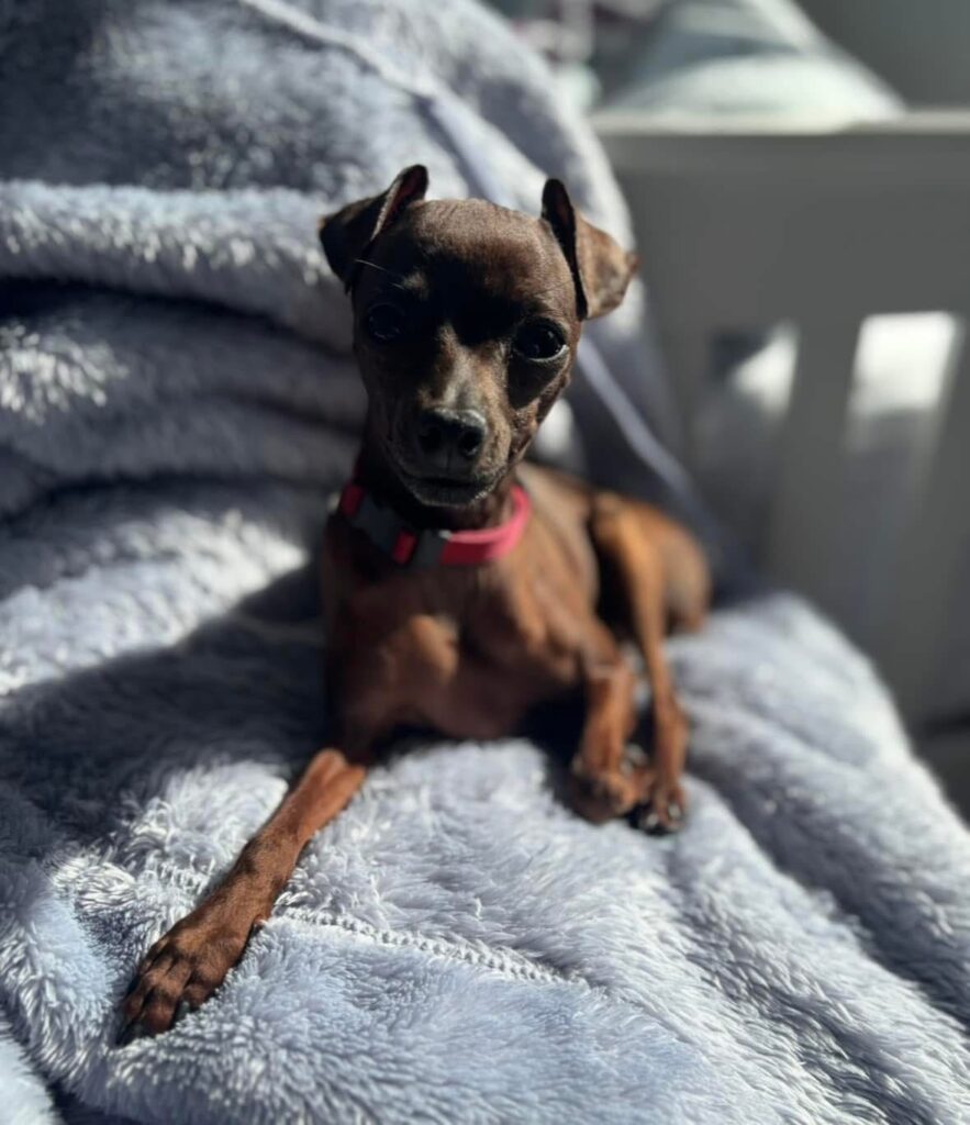 ” Hettie’s personality has slowly been revealed the more she felt safe and comfortable. She now happy dances for her food, sleeps in the bed, and gets the zoomies.“