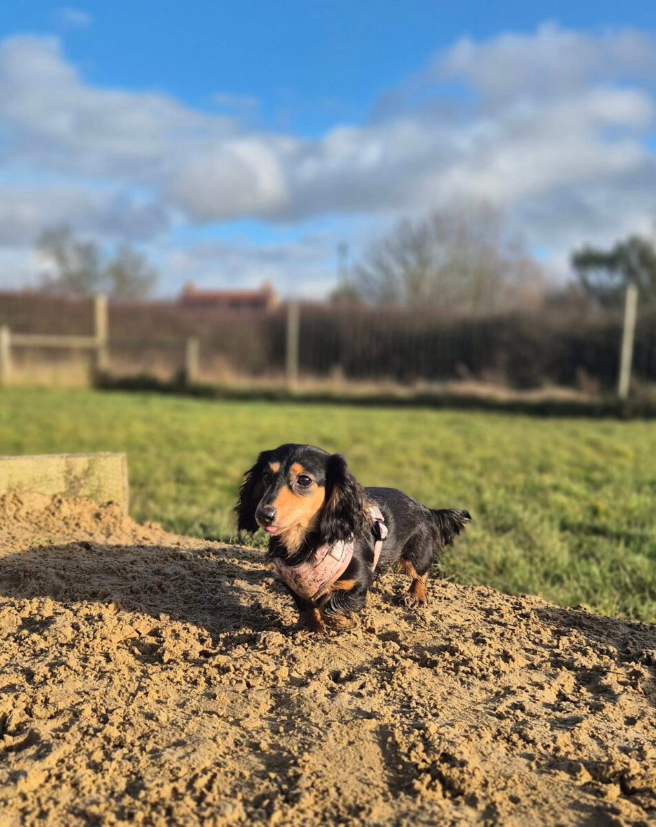 On 16th October I drove to Cobham services and walked towards a very barky van, already crying at the thought of meeting Hettie… there she was, the only quiet sausage, she was petrified. The crying (from me) continued on the drive home as it dawned upon me just how traumatised she was. She was wearing a little cat collar because she was so small . After lots of cheese and encouragement she stepped on grass for what was probably the first time in her 5 years of life.