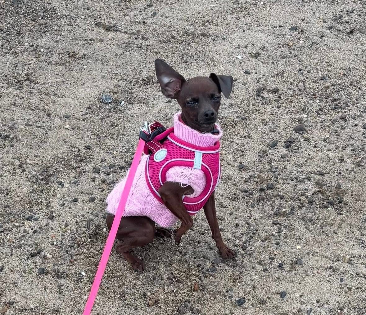 She may be 0% Dachsund in her DNA….(88% Miniature Pinchser)….But she is 100% dachshund in personality! Stubborn, hates the rain, greedy, a bit barky, a professional thief of socks, tissues and other treasures. Loves cuddles, belly rubs and cheese!