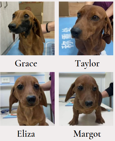 Grace was found in a local shelter, whilst Taylor, Eliza & Margot appear to have been abandoned. All are now safe with our partnered Vets in China.